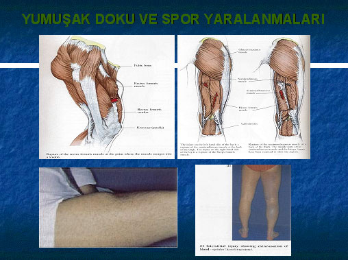 - Kas yaralanmalarında tanıda; Anemnez ve fizik muayene oldukça önemlidir. Kas ultrasonu, MR ve kan biyokimyası gibi tetkikler tanıya yardımcı olur.